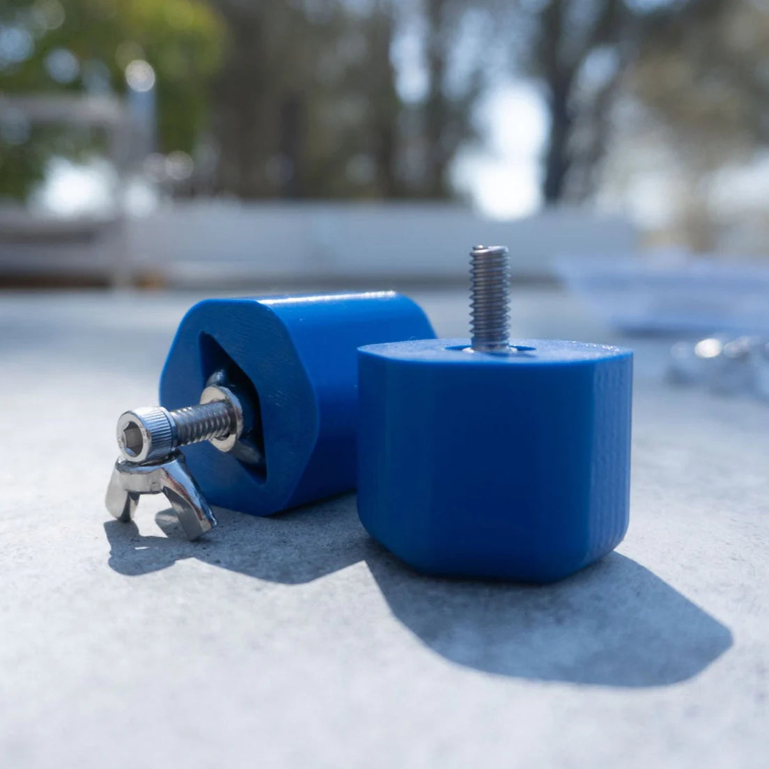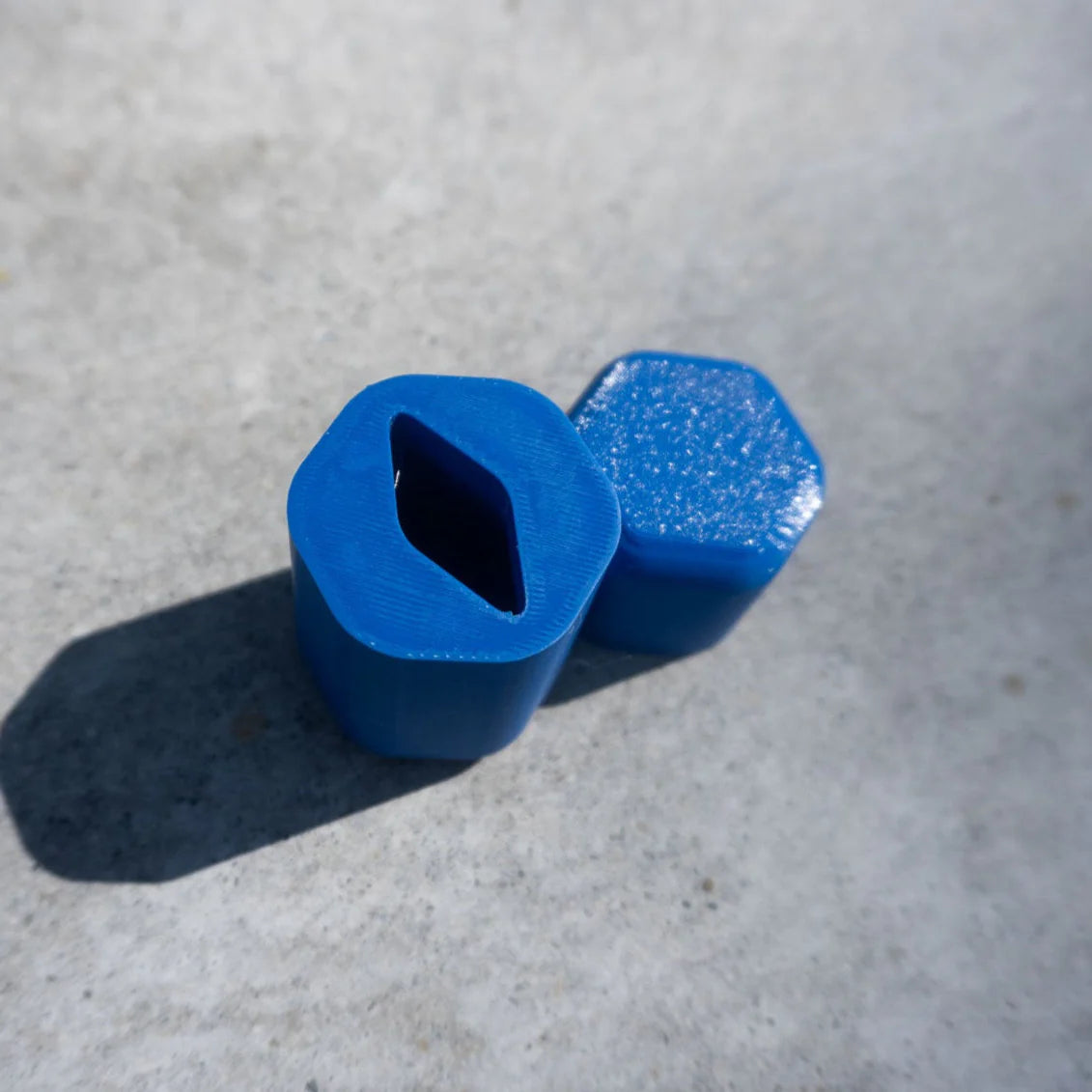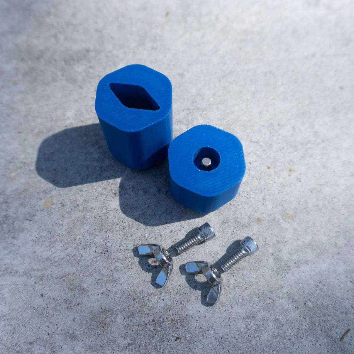 Once you've loosely threaded your wing nut onto your bat pin, you can place both halves of the Bat Pin Wrench around your bat pin and wing nut and twist to firmly tighten. To loosen, simply place the top half onto the pin and loosen.