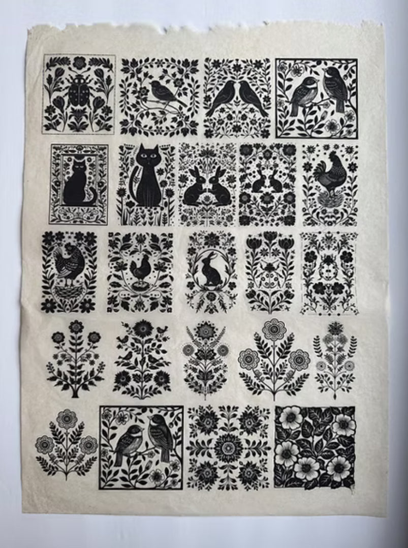 Printed on a 13x19inch rice paper tissue. This transfer can be fired to a range of 04-10.