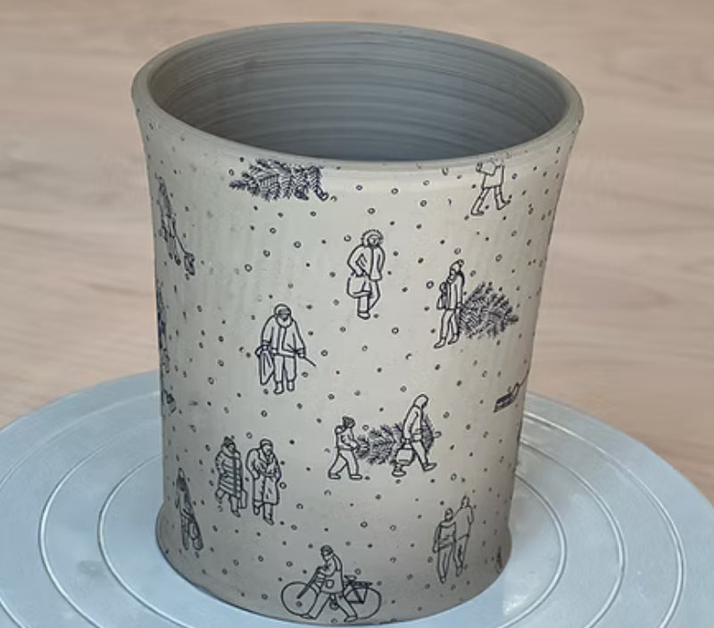 Christmas Landscape features festive people enjoying the snow. Printed on a 13x19inch rice paper tissue. This transfer can be fired to a range of 04-10.