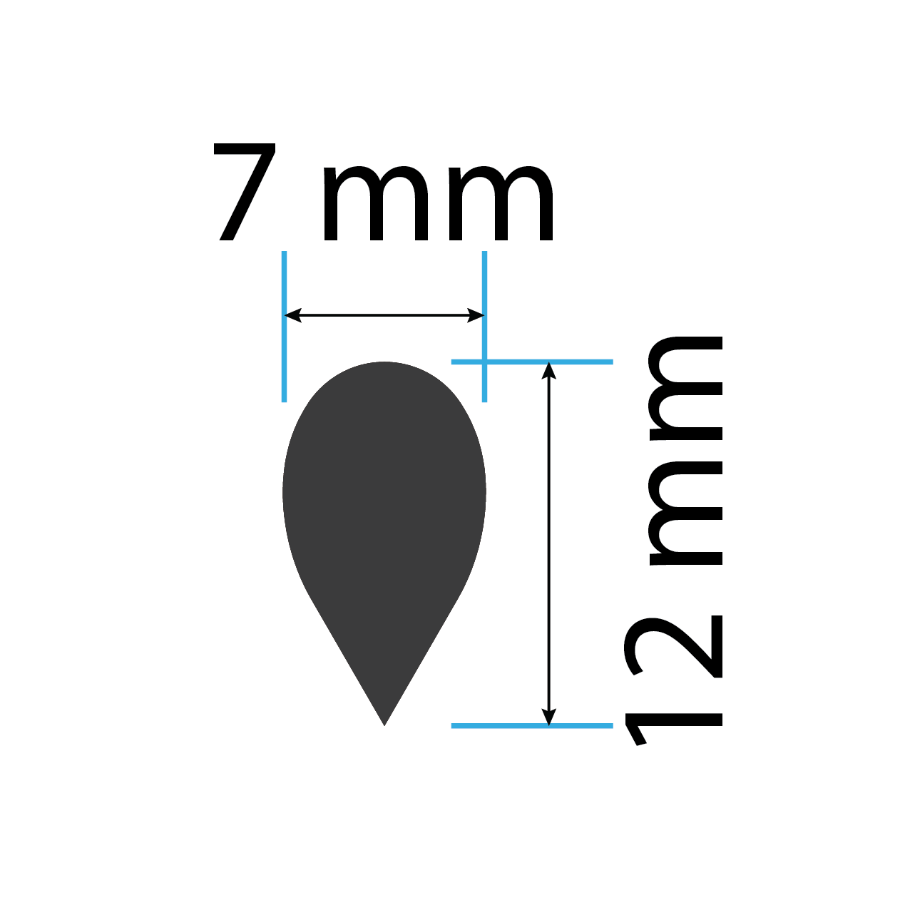 - Impression tip: approximately 12 mm long, 7 mm wide, solid teardrop shape