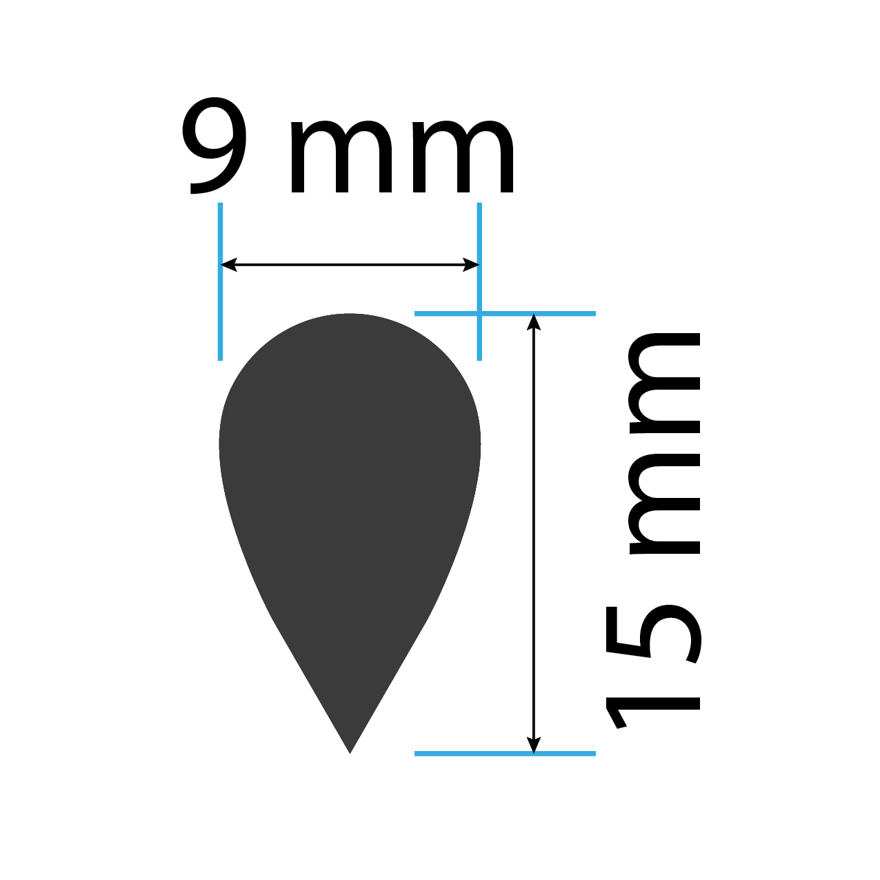 - Impression tip: approximately 15 mm long, 9 mm wide, solid teardrop shape
