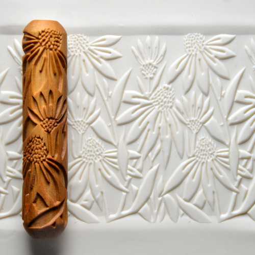 BHR HandRollers are deeply carved, have unique designs, and release well from clay and any soft medium. All MKM rollers are made from wood that is precision carved to make deep beautiful impressions. The rollers are also beveled carved, allowing them to release easily from clay. You simply roll the BHR roller with your hand across the clay or up the wall of a pot to create a beautiful pattern. Because of their smaller size and light weight, BHR rollers are perfect for rolling vertically up the walls of a thrown pot. BHR rollers also work great on slabs. The ends of the rollers are rounded to avoid a line along each side of the pattern. This allows patterns to blend. For long rolls, the MKM Roller Board can help create long smooth rolls and avoid knuckle bumps. MKM rollers are finished with tung oil to ensure durability over many years of use. MKM tools are easily cleaned with water and a soft toothbrush.