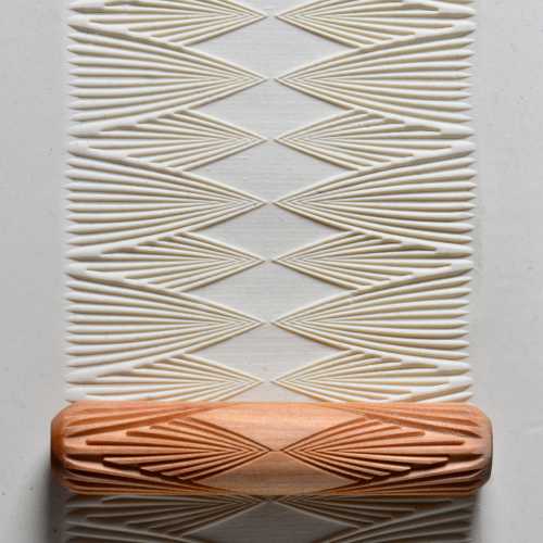 BHR HandRollers are deeply carved, have unique designs, and release well from clay and any soft medium. All MKM rollers are made from wood that is precision carved to make deep beautiful impressions. The rollers are also beveled carved, allowing them to release easily from clay. You simply roll the BHR roller with your hand across the clay or up the wall of a pot to create a beautiful pattern. Because of their smaller size and light weight, BHR rollers are perfect for rolling vertically up the walls of a thrown pot. BHR rollers also work great on slabs. The ends of the rollers are rounded to avoid a line along each side of the pattern. This allows patterns to blend. For long rolls, the MKM Roller Board can help create long smooth rolls and avoid knuckle bumps. MKM rollers are finished with tung oil to ensure durability over many years of use. MKM tools are easily cleaned with water and a soft toothbrush.