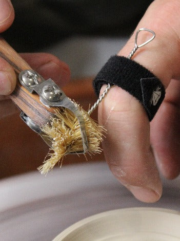 Meet the Finger Brush, the little helper that’ll make a big difference while you work. Now you can remove burrs and other unwanted debris from your pottery without stopping to pick up a separate tool — because it’s already at your fingertips!
