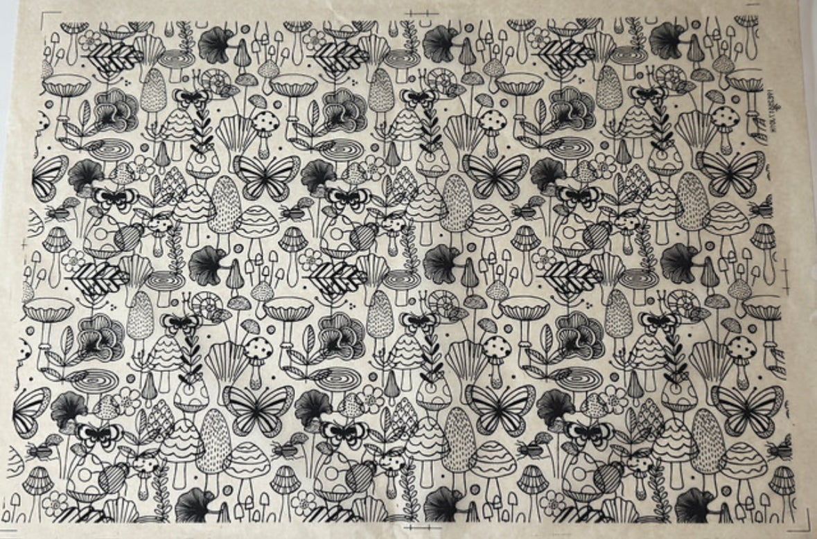Fungi Forest is a collection of stylized mushrooms this design gives off colouring book vibes with this fun foresty fungi, floral and bug combo.
