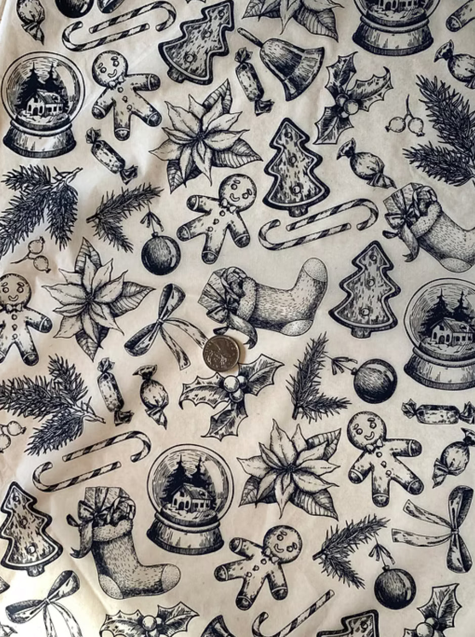 Happy Holidays is a 13x19 inch rice paper underglaze transfer! It features several ink style Christmas drawings. This transfer can be fired to a range of 04-10.