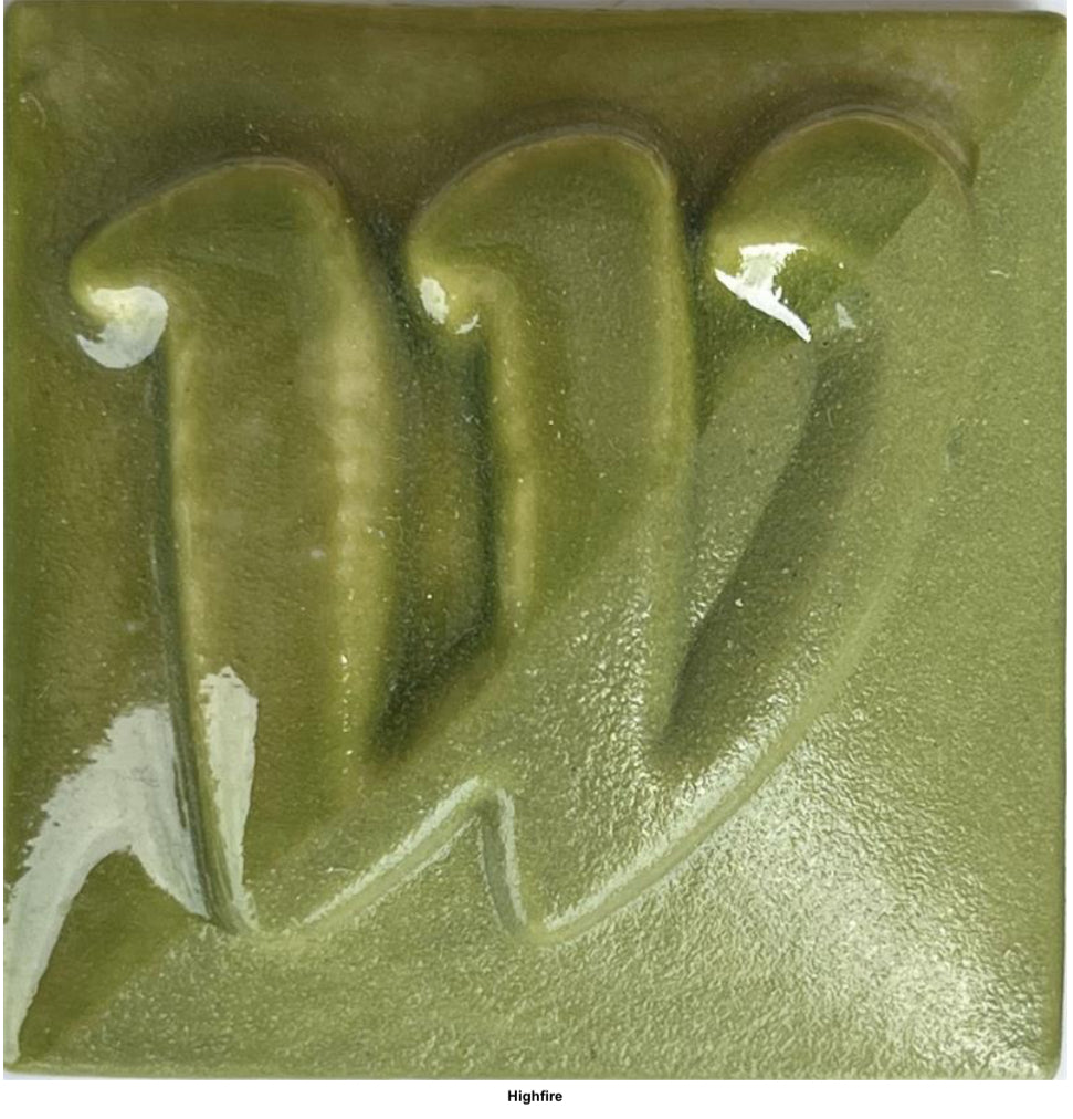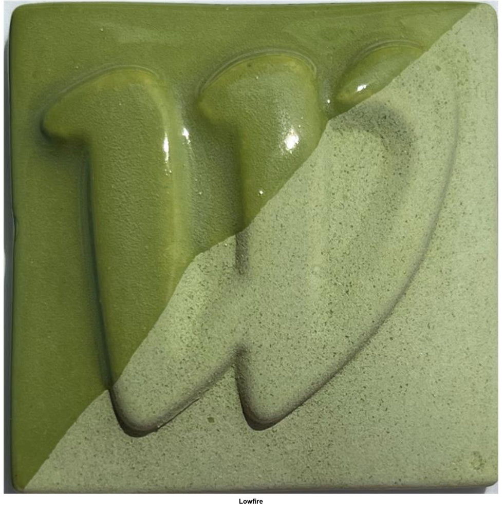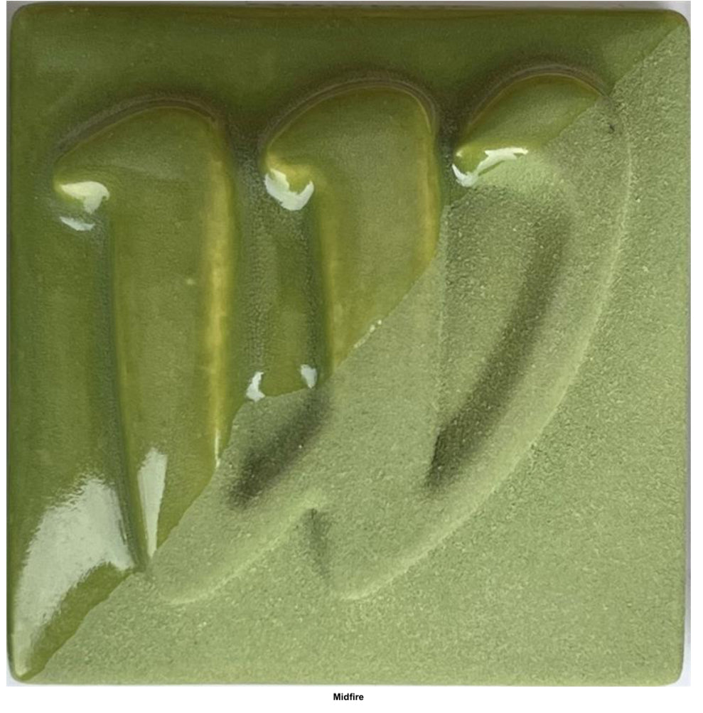 | Western semi-opaque Light Green underglaze Fires from cone 06 to 10 Lead free, food safe, non-toxic, and safe for school use K-12. Can be used on greenware or bisque For full opaque color, brush three coats. One or two coats will give a lighter, slightly translucent color. |