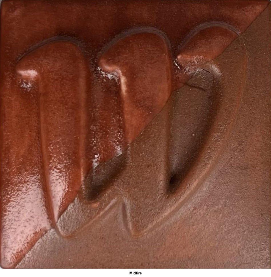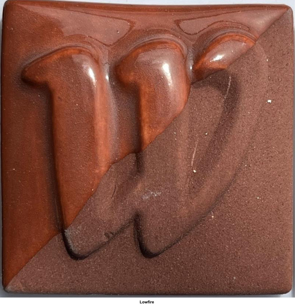 | Western semi-opaque Mahogany underglaze Fires from cone 06 to 10 Lead free, food safe, non-toxic, and safe for school use K-12. Can be used on greenware or bisque For full opaque color, brush three coats. One or two coats will give a lighter, slightly translucent color. |