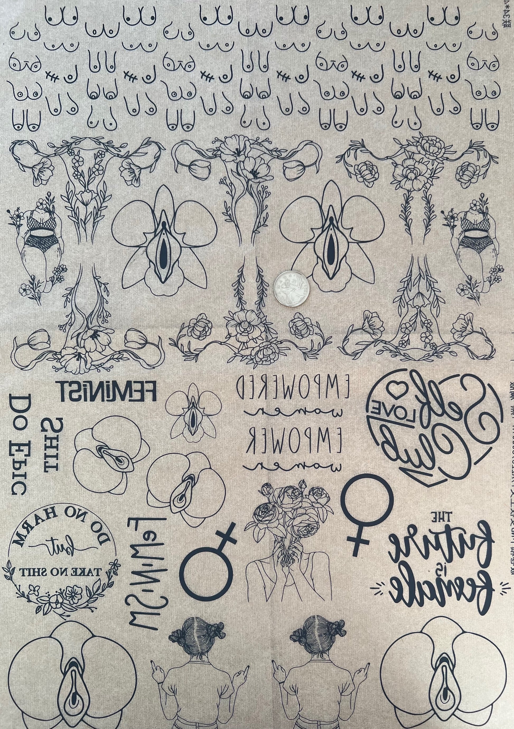 Printed on a 13x19inch rice paper tissue. This transfer can be fired to a range of 04-10.