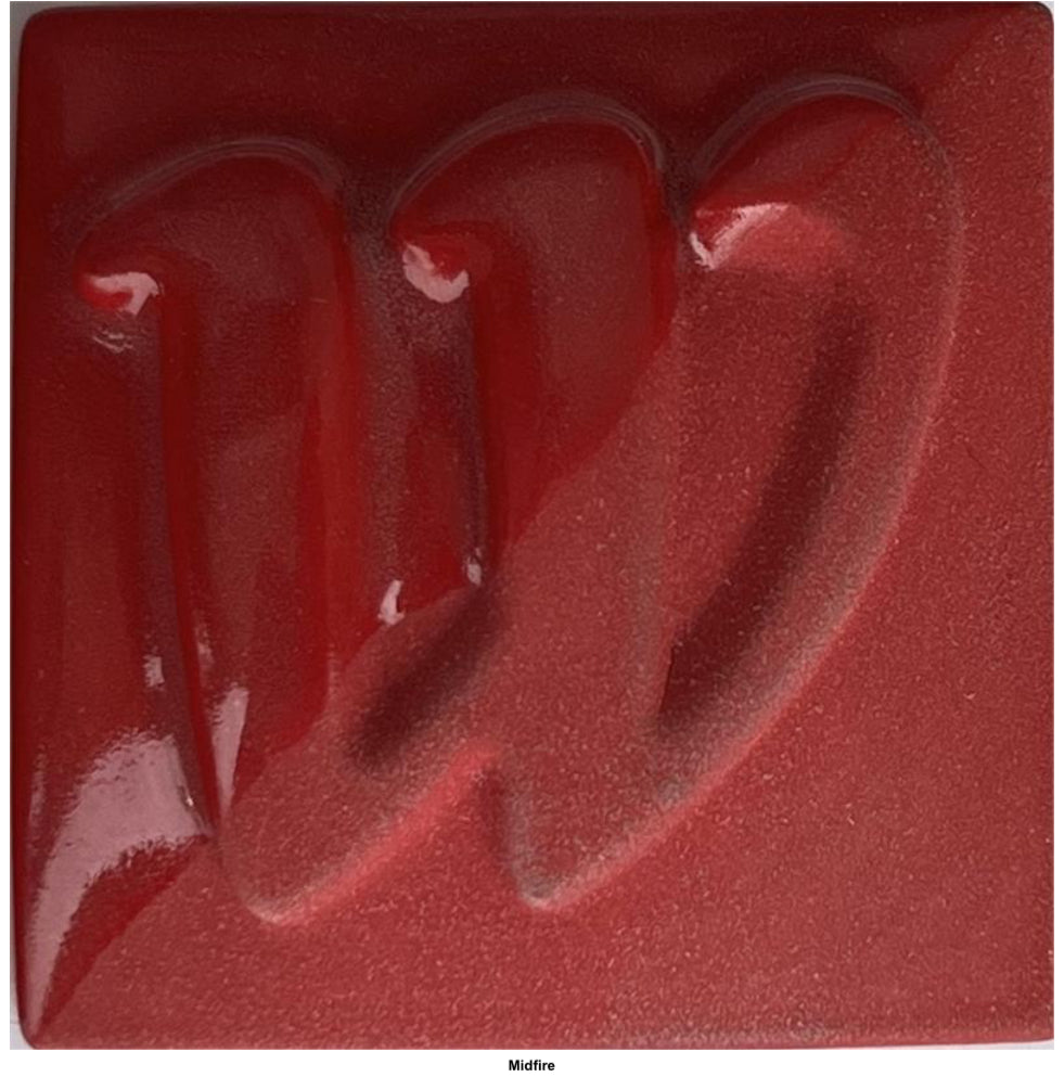 | Western semi-opaque Pomegranate Red underglaze Fires from cone 06 to 10 Lead free, food safe, non-toxic, and safe for school use K-12. Can be used on greenware or bisque For full opaque color, brush three coats. One or two coats will give a lighter, slightly translucent color. |