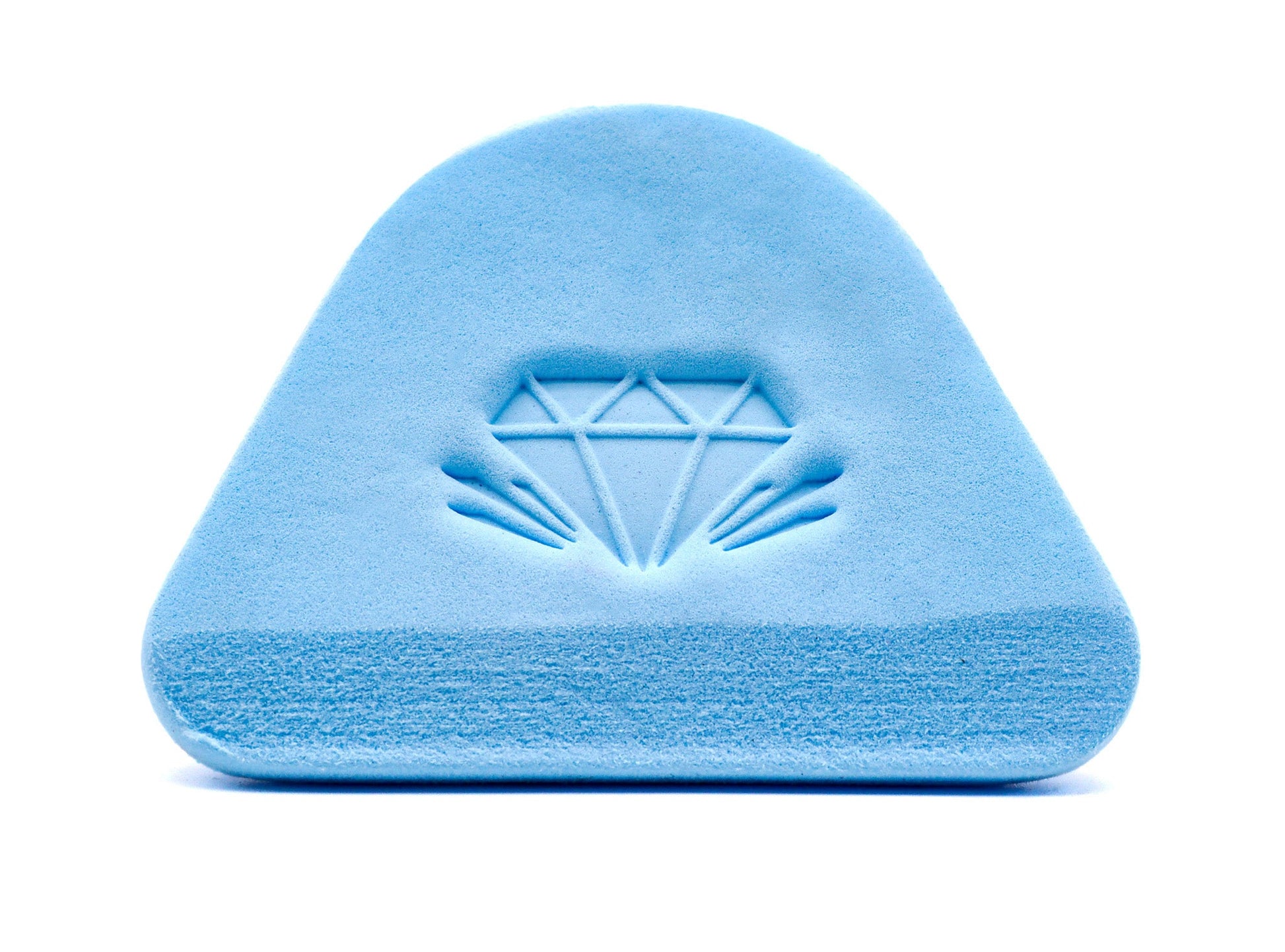 - Fine sponge (light blue) is best for final touch-ups or delicate pieces. Squishes most after compression, flexible, extremely smooth finish.
