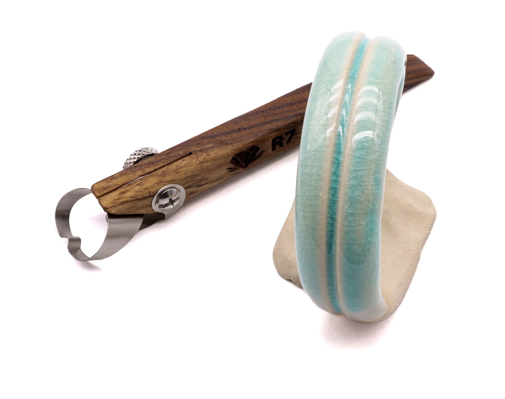 The R7 Single Groove Handheld Clay Extruder easily slices through a slab of clay so you can make a handle shape with a single cut.