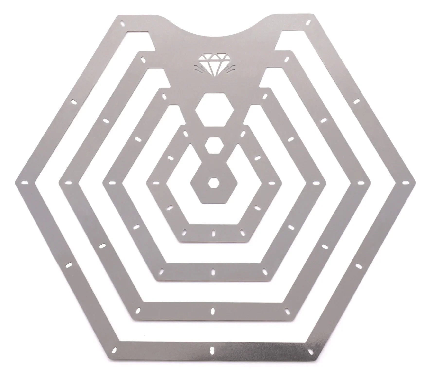 - Stainless steel, metal rib with 120-degree, hexagon cutouts
