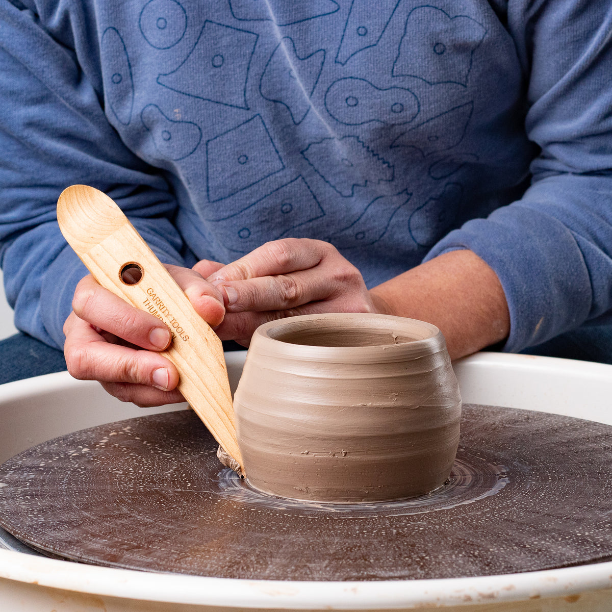 The scooped end of our Thumb tool allows you to use it instead of your actual thumb when hand-building. Pressing seams, shaping slabs, or even trimming a clay pot on the wheel, this pottery tool makes light work of any ceramic project.