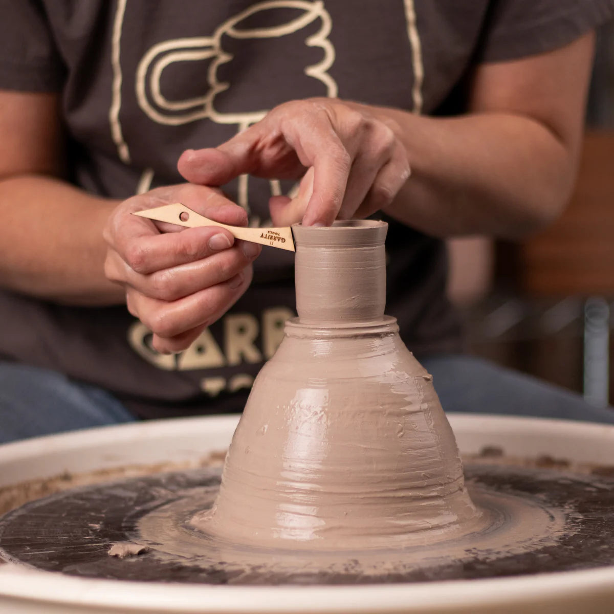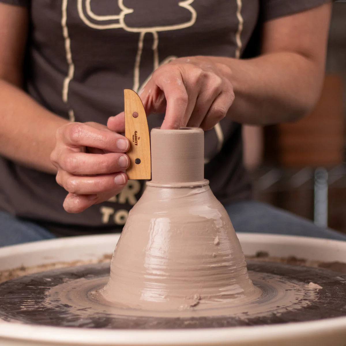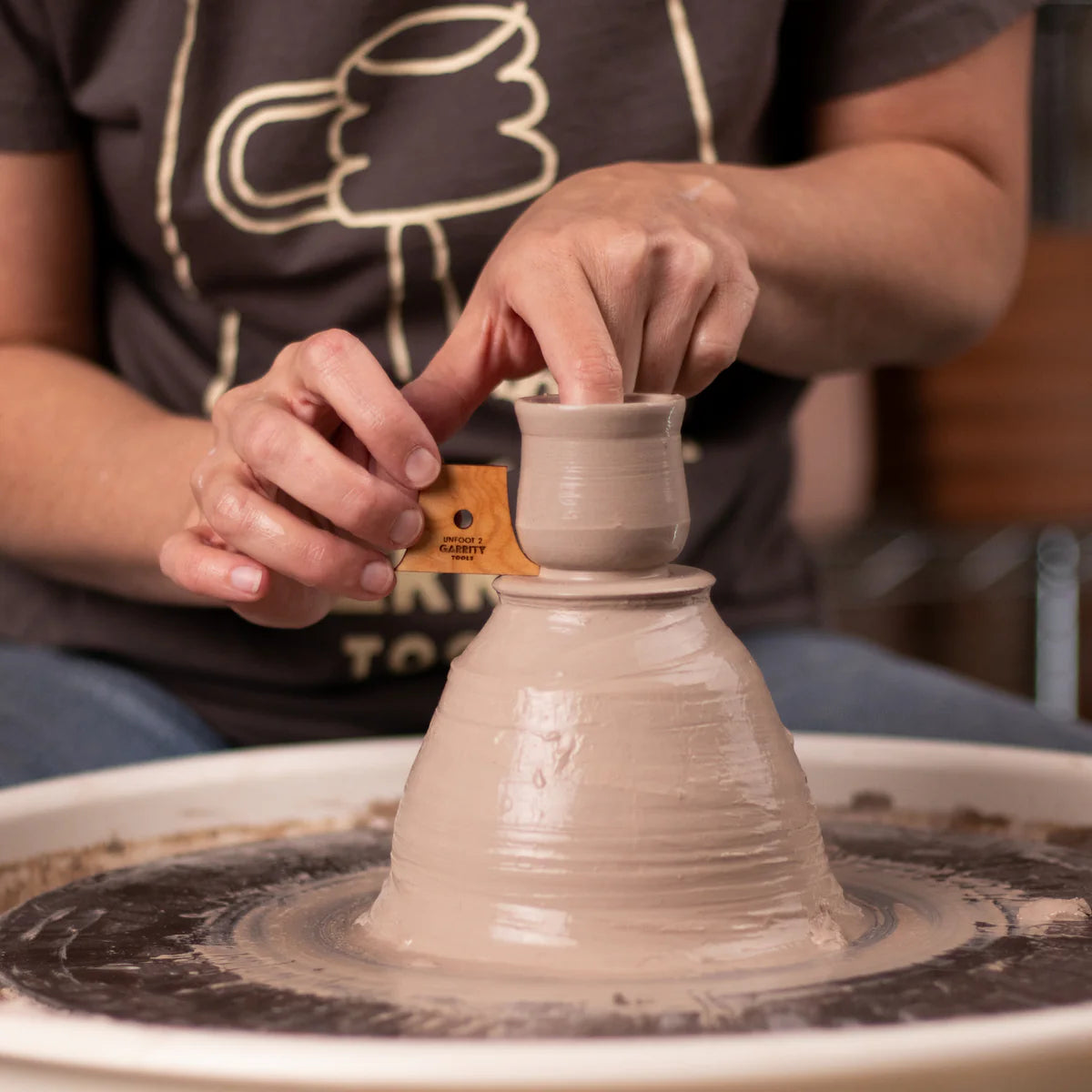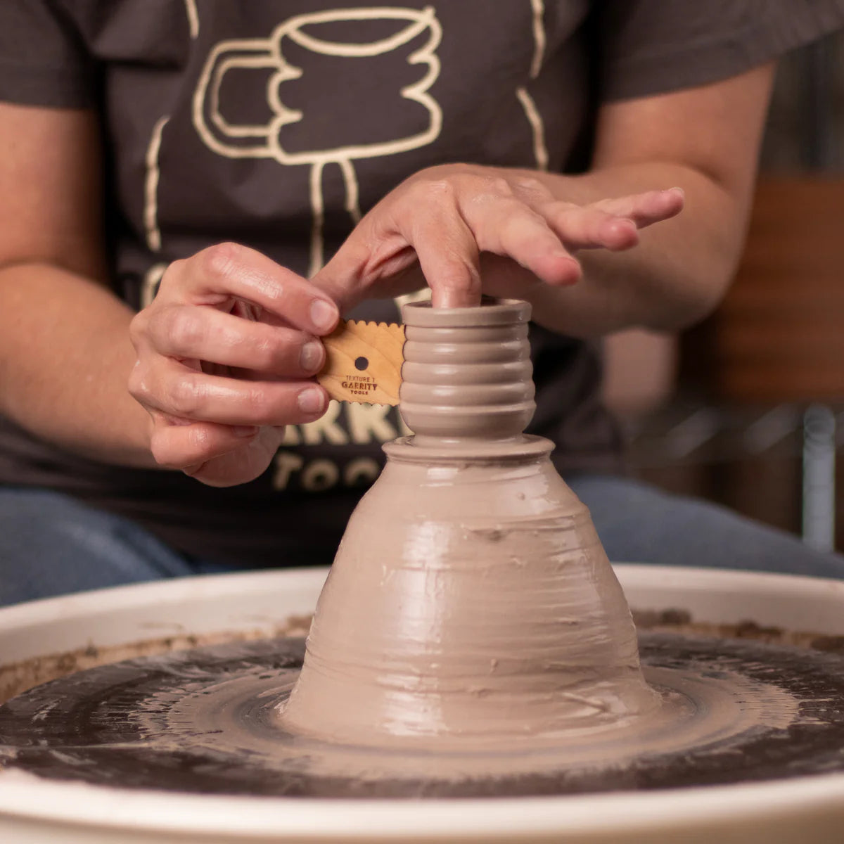 Oh dear…can you handle the cuteness of these tiny Garrity Tools?! This mini tool set includes a small Texture 1, Unfoot 2, T6, and T1. They come sealed up in an adorable (and recyclable) bag! You can use these tools on a small wheel or when you’re throwing off the hump to make tiny vessels. They come in handy for centering, adding texture, refining form, and straightening up sides.