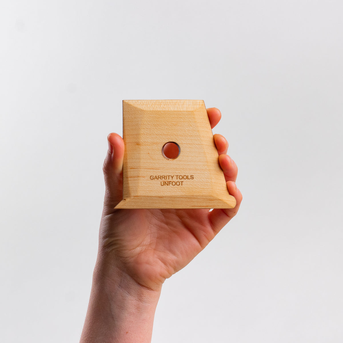 Unfoot 1 provides a simple way to give your clay vessel a bit of a lift. With a point sticking out from one corner and a curve from the other, you can undercut your clay while maintaining the shape of your walls. This pottery tool will save you tons of time that you might spend trimming later.