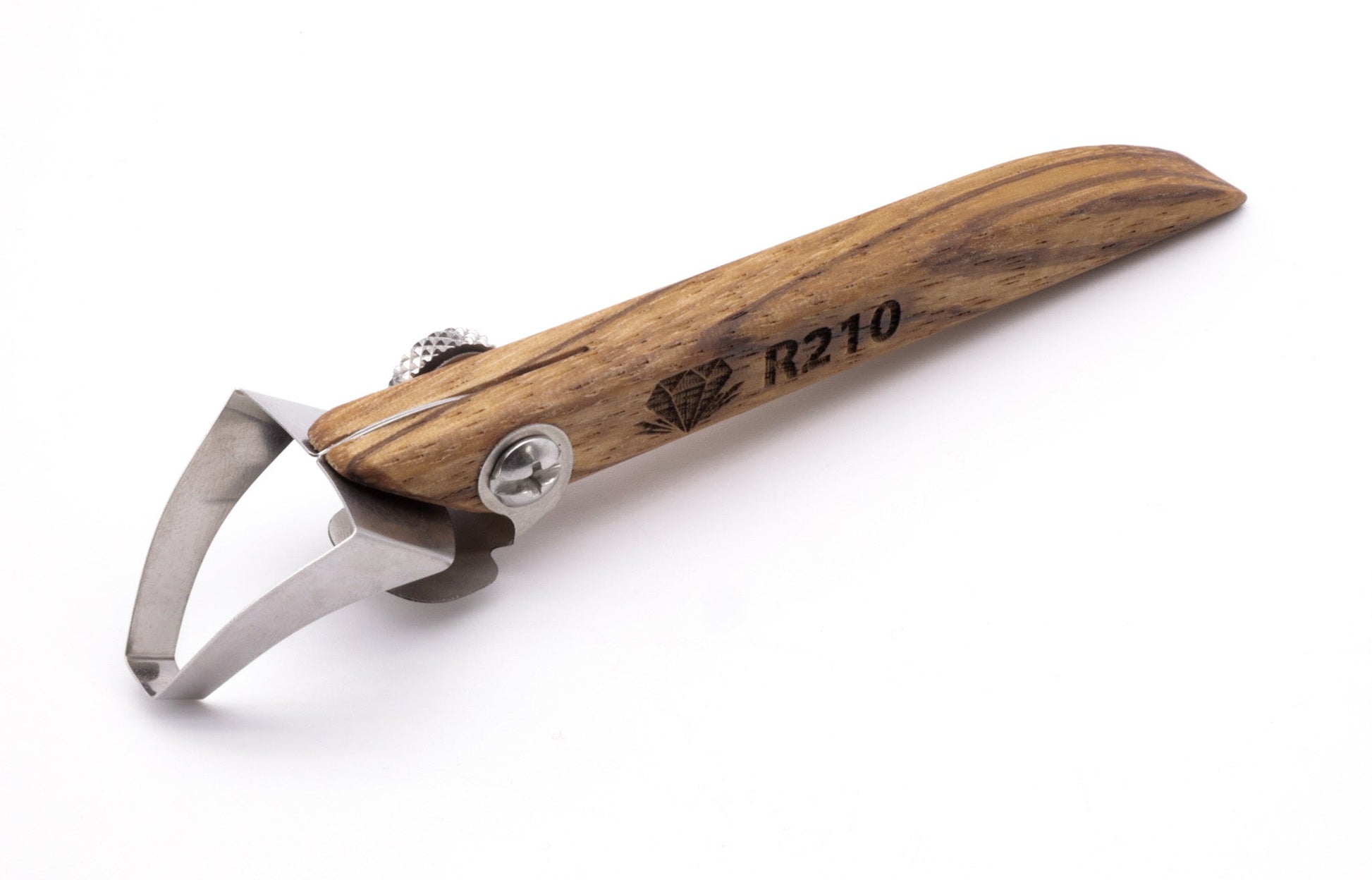 - Angled, stainless-steel blade leaves clean edges and pulls through clay effortlessly